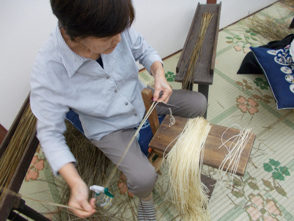 藺草(いぐさ)からズイの部分をひき出す安堵町指定文化財の技術「灯芯ひき」と、わらをより合わせて作る「わらぞうり作り」の体験会です。